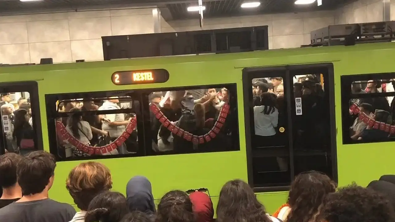 Bursa'da metro vagonunda çıkan yumruklu kavga kameraya yansıdı.