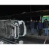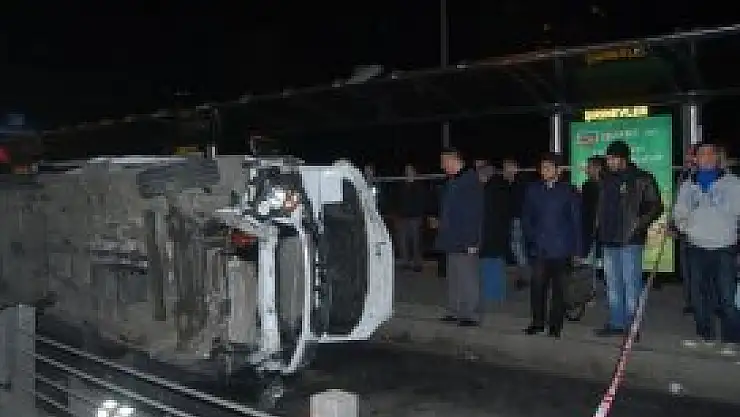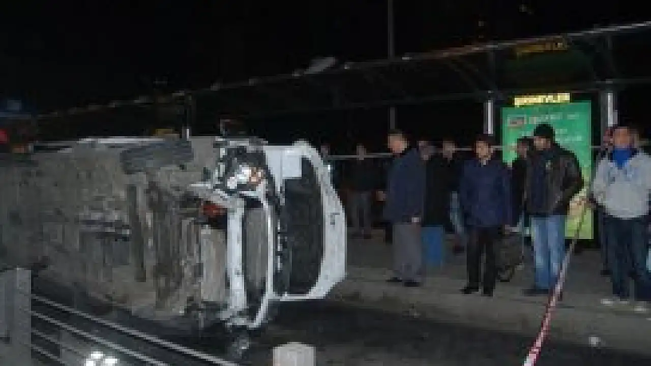 Şirinevler'de kontrolden çıkarak metrobüs durağına devrilen minibüsün sürücüsü yaralandı.