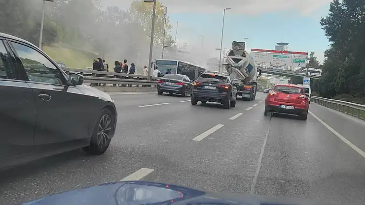 KADIKÖY Acıbadem Metrobüs Durağı yakınlarında bir metrobüsün motor kısmında yangın çıktı.