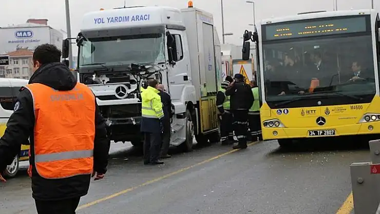 Alınan bilgiye göre, Avcılar-Söğütlüçeşme istikametinde seyreden metrobüs, Çağlayan durağı yakınında henüz bilinmeyen nedenle ters yönde seyreden İETT'ye ait yol yardım aracıyla çarpıştı.