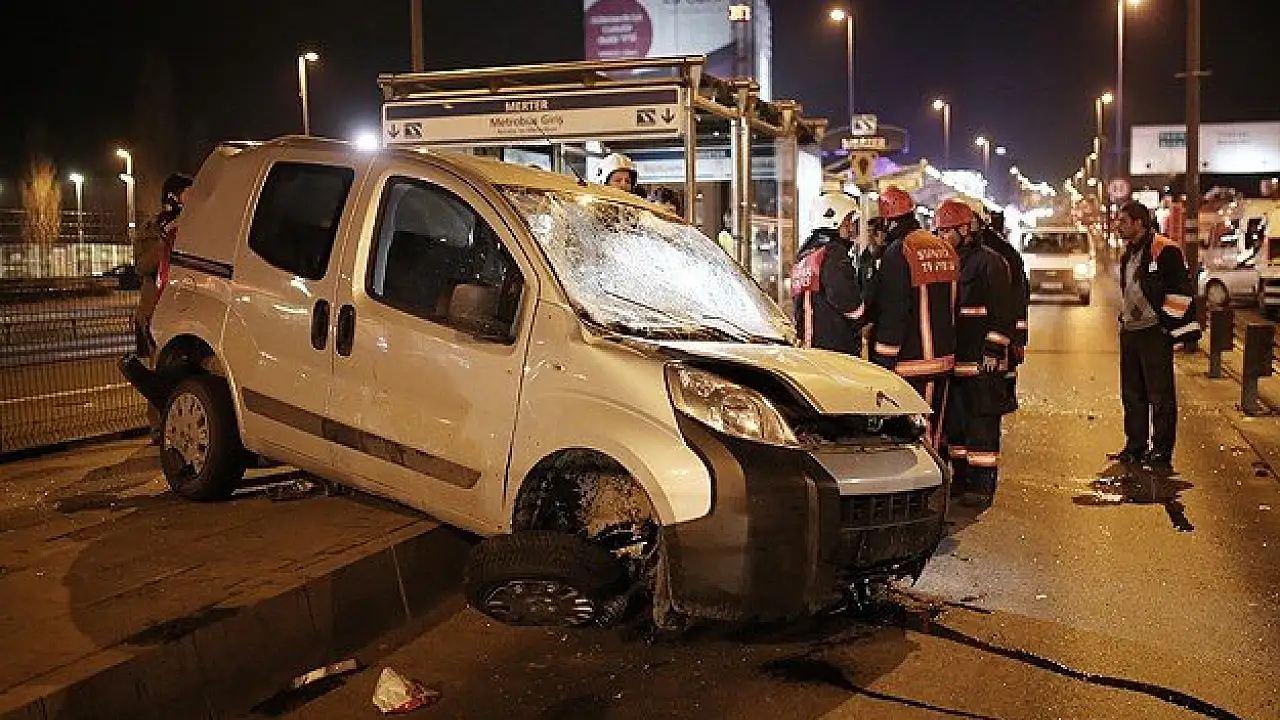 Seyir halindeyken kontrolden çıkan bir kamyonet Merter Metrobüs Durağı'na çarptı, araçtaki 4 kişi yaralandı.