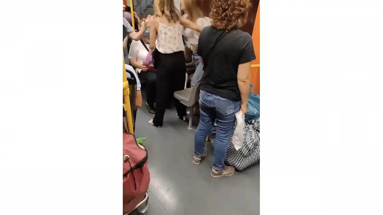 Metroda yer verme yüzünden çıkan tartışma kameralara yansıdı
