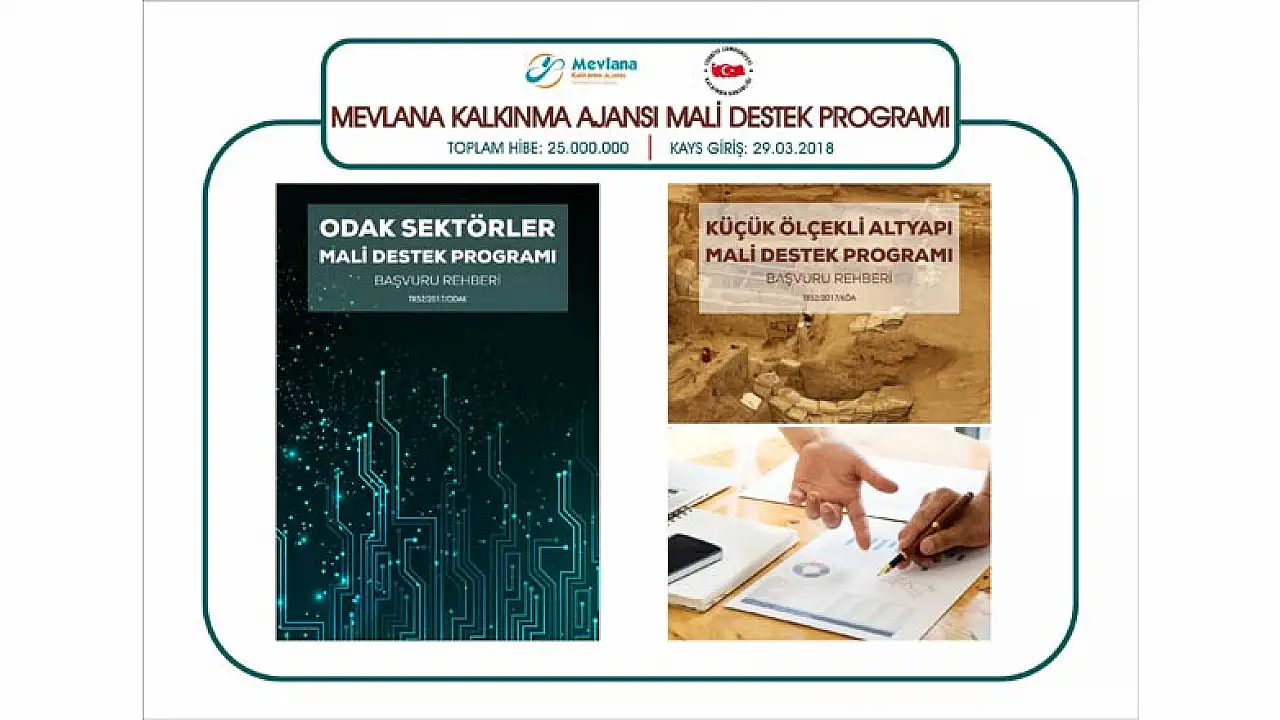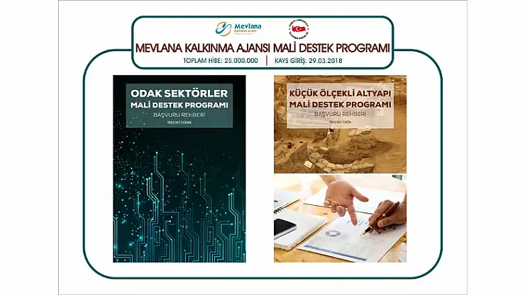 Yapılan açıklamada, "Mevlana Kalkınma Ajansı, 2018 Yılı Mali Destek Programları çerçevesinde kar amacı güden işletmelere yönelik “Odak Sektörler” ve kar amacı gütmeyen kurum ve kuruluşlara yönelik olarak da “Küçük Ölçekli Altyapı” başlıkları altında toplam bütçesi 25 Milyon TL olan iki mali destek programı için teklif çağrısına çıktı. MEVKA bu mali destek programı ile bölgedeki kurum ve kuruluşların mali açıdan desteklenmesini ve sürdürülebilir kalkınmanın devam etmesini amaçlıyor.