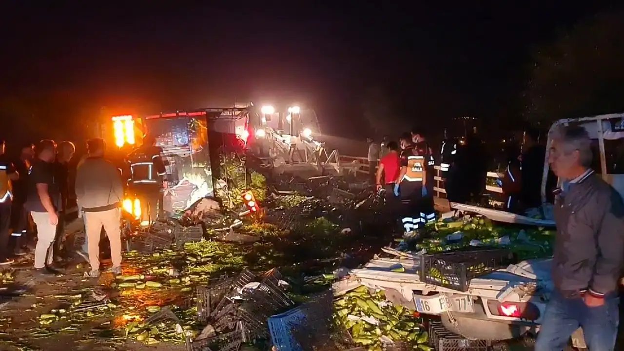 Kaza, saat 19.30 sıralarında İznik- Orhangazi Yolu, Çakırca Köprüsü mevkisinde meydana geldi. Orhangazi'den İznik istikametine seyir halinde olan mevsimlik tarım işçilerinin taşındığı Ersel E. yönetimindeki 16 FBK 77 plakalı kamyonet, Kağan B.'nin kullandığı 16 H 0465 plakalı sebze yüklü kamyonla çarpıştı. Çarpışmanın şiddetiyle kamyon devrilirken, kamyonet sürücüsü araçta sıkıştı, kasasındaki Suriyeli uyruklu 5 mevsimlik işçi ise yola savruldu. Çevredekilerin ihbarı üzerine kaza yerine çok sayıda jandarma, itfaiye ve sağlık ekibi sevk edildi. Kaza yerine gelen sağlık ekiplerince yapılan kontrolde 1 işçinin yaşamını yitirdiği, kamyonette sıkışan sürücüsü ile 4 işçinin de ağır yaralandığı belirlendi. İtfaiye ekiplerince sıkıştığı yerden kurtarılan kamyonetin sürücüsü ile yola savrulup ağır yaralanan 4 işçi, kaza yerindeki ilk müdahalenin ardından İznik ve Orhangazi'deki hastanelere kaldırılarak, tedaviye alındı. Jandarma ekipleri ise olası bir başka kaza ihtimaline karşı çevrede güvenlik önlemi aldı. Kaza nedeniyle yaklaşık 2 saat trafiğe kapanan yol, araçların çekilmesi ve yola saçılan sebzelerin temizlenmesinin ardından normale döndü.