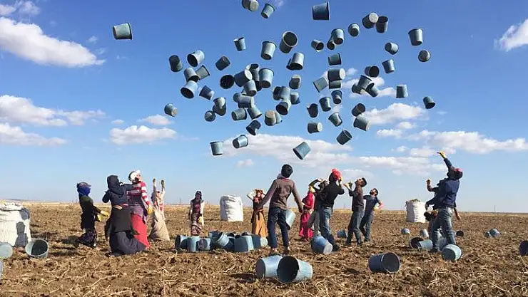 Konya’nın Cihanbeyli ilçesindeki bir patates tarlasında çalışan mevsimlik işçiler, işleri bitirdikten sonra hep birlikte kovalarını havaya fırlatarak, büyük sevinç yaşadı. Geçtiğimiz yıl da mevsimlik işçi Osman Atan ve akrabaları tarafından sosyal medyada paylaşılan fotoğraflar kısa süre içerisinde büyük beğeni alarak, binlerce kişi tarafından paylaşılmıştı.
