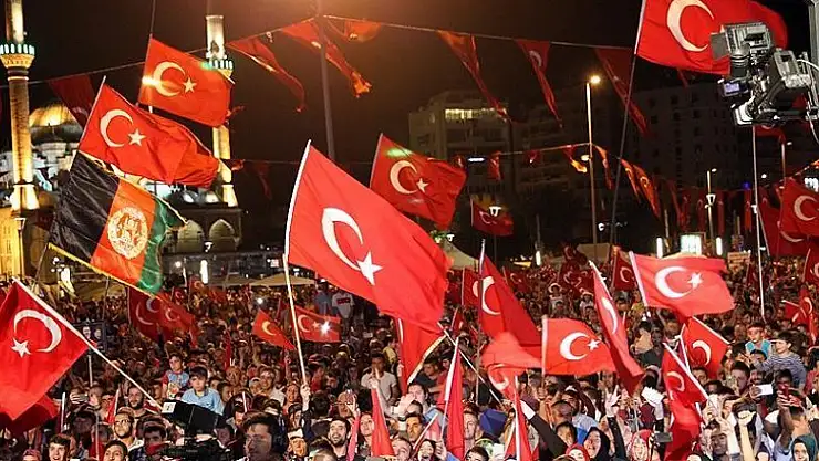 Fetullahçı Terör Örgütü'nün darbe girişimine tepki için kent meydanlarında toplanan vatandaşlar 'demokrasi nöbeti'ne devam ediyor.