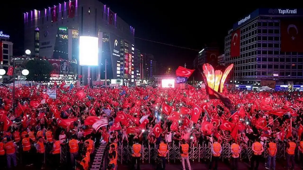 Kent Meydanı'nda ellerinde pankartlar ve Türk bayraklarıyla toplanan binler, FETÖ'nün darbe girişimine tepki gösterdi.