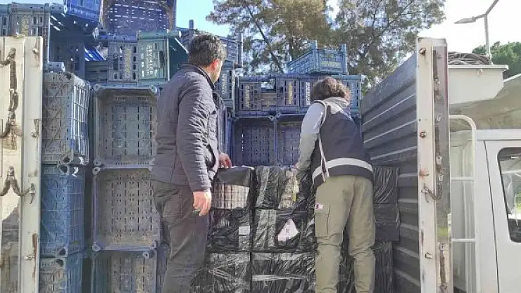 Meyve-sebze kasası taşıyan kamyondan 17 bin 450 paket kaçak sigara çıktı