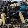 Mezarlığa uçan otomobil yanarak demir yığınına döndü