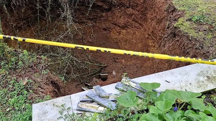 Sakarya'nın Kocaali ilçesinde mezarlıkta yaklaşık 6 metre derinliğinde, 30 metre genişliğinde oluşan ve bölgede ilk defa görülen obruk panik oluşturdu.
