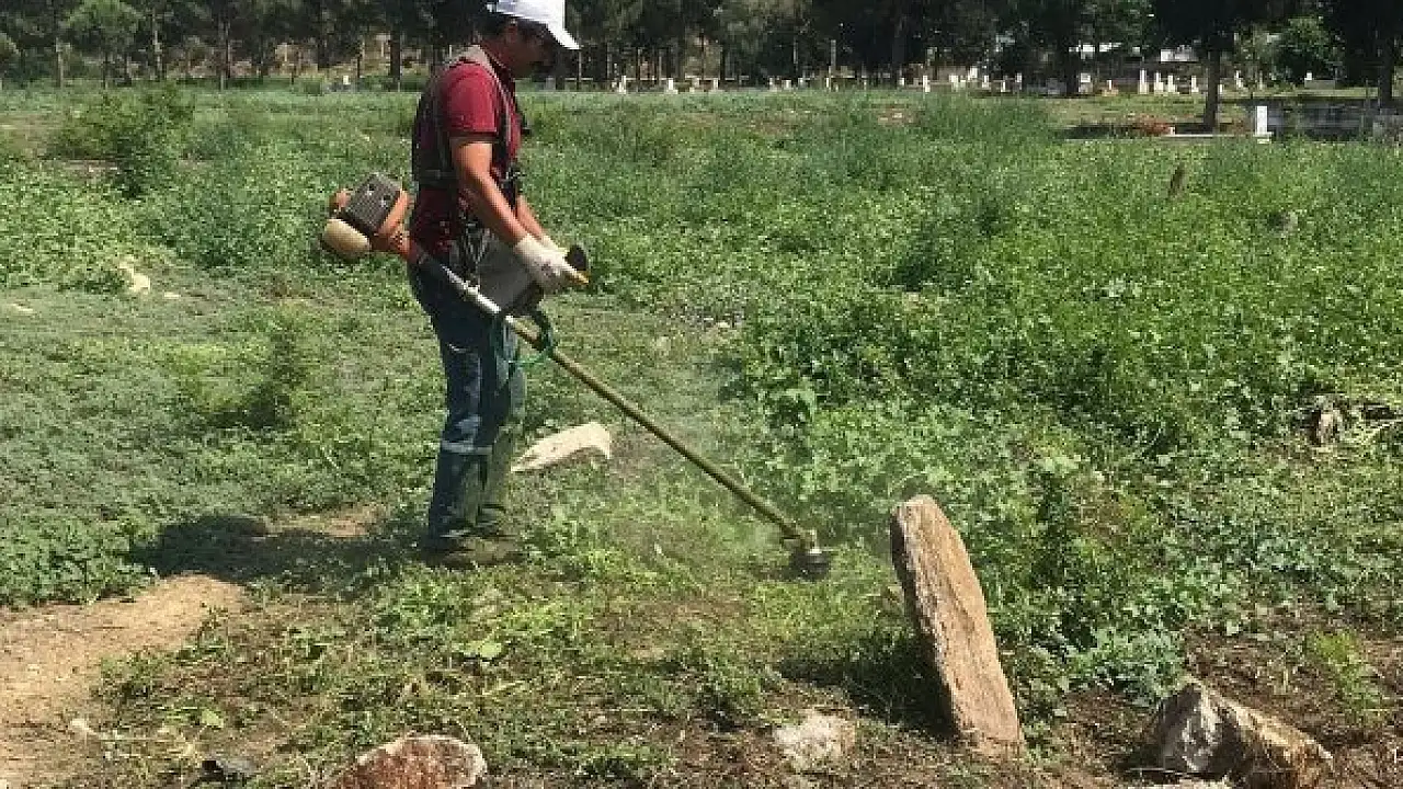 Belediye Başkanı Nedim Kaplan'ın talimatlarıyla Kurban Bayramı öncesi vatandaşların huzurlu bir şekilde mezarlık ziyareti yapmaları için mezarlıklarda başlatılan temizlik çalışmaları doğrultusunda mezarlık içerisindeki otlar temizlenirken, ağaçların bakımları gerçekleştirildi.