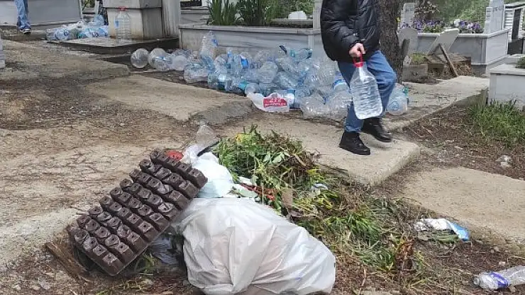Vatandaşların mezarlardaki çiçekleri sulamak için yanlarına getirdikleri plastik su bidonları, şişe ve kapları ziyaret sonrasında çevreye bırakması nedeniyle kirli bir görüntü ortaya çıktı.
