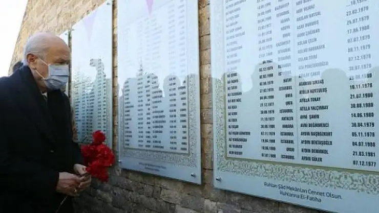 Kur'an-ı Kerim tilavetinin ardından dua eden Bahçeli, şehit isimlerinin yazılı olduğu alana karanfil bıraktı.