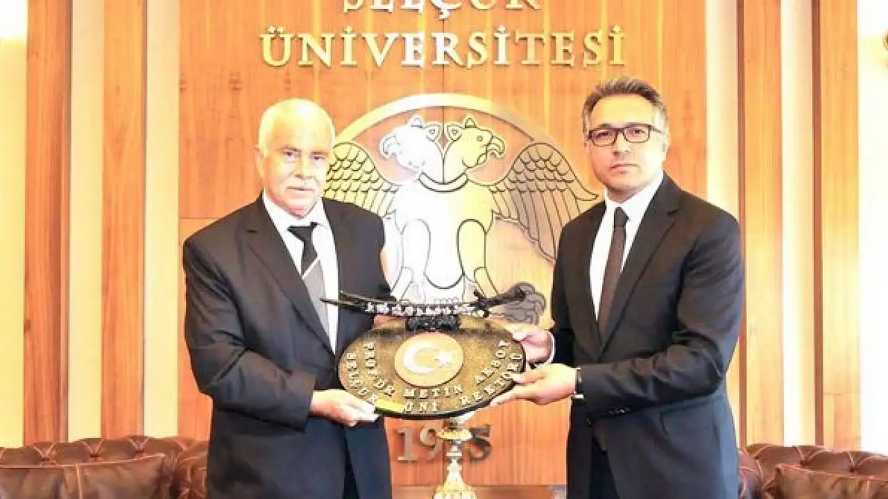 Milliyetçi Hareket Partisi (MHP) Selçuklu İlçe Başkanı Süleyman Savran ve beraberindeki yönetim kurulu üyeleri, Selçuk Üniversitesi Rektörü Prof. Dr. Metin Aksoy'u makamında ziyaret etti.