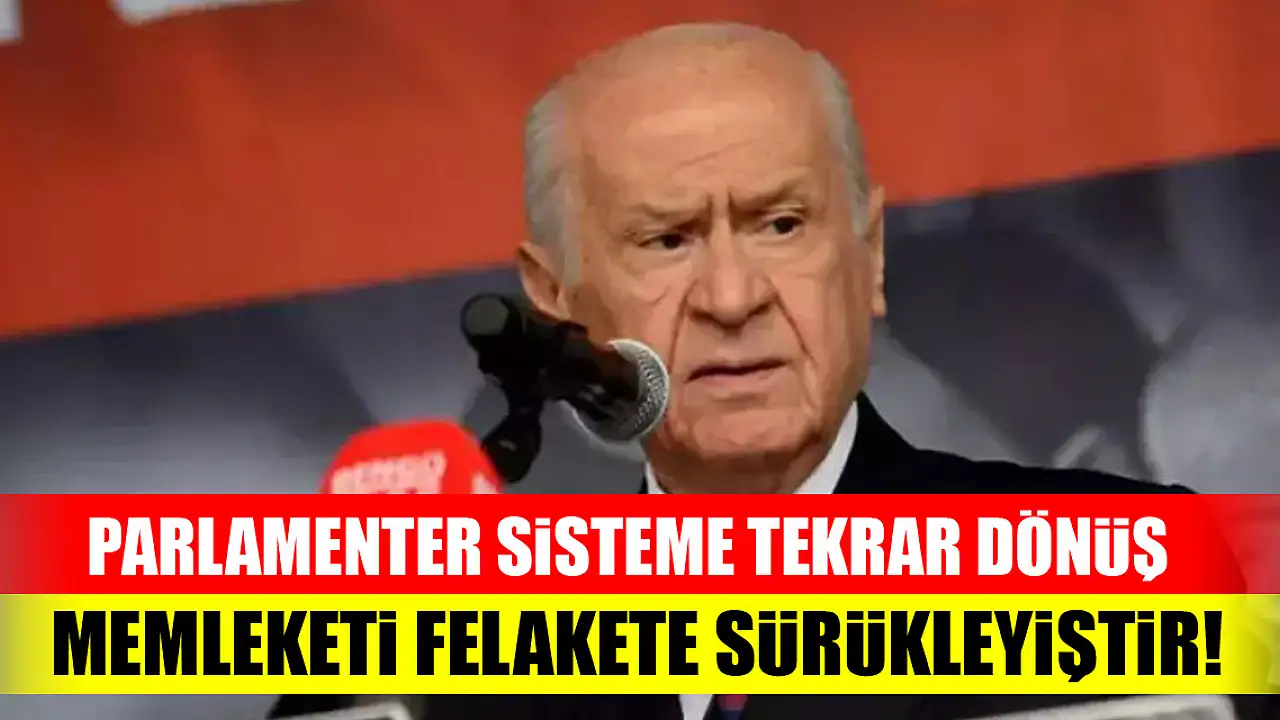 Milliyetçi Hareket Partisi Lideri Devlet Bahçeli, "Parlamenter sisteme tekrar dönüş, memleketi felakete sürükleyiştir. Bunu kabul edemeyiz, etmemeliyiz" dedi.