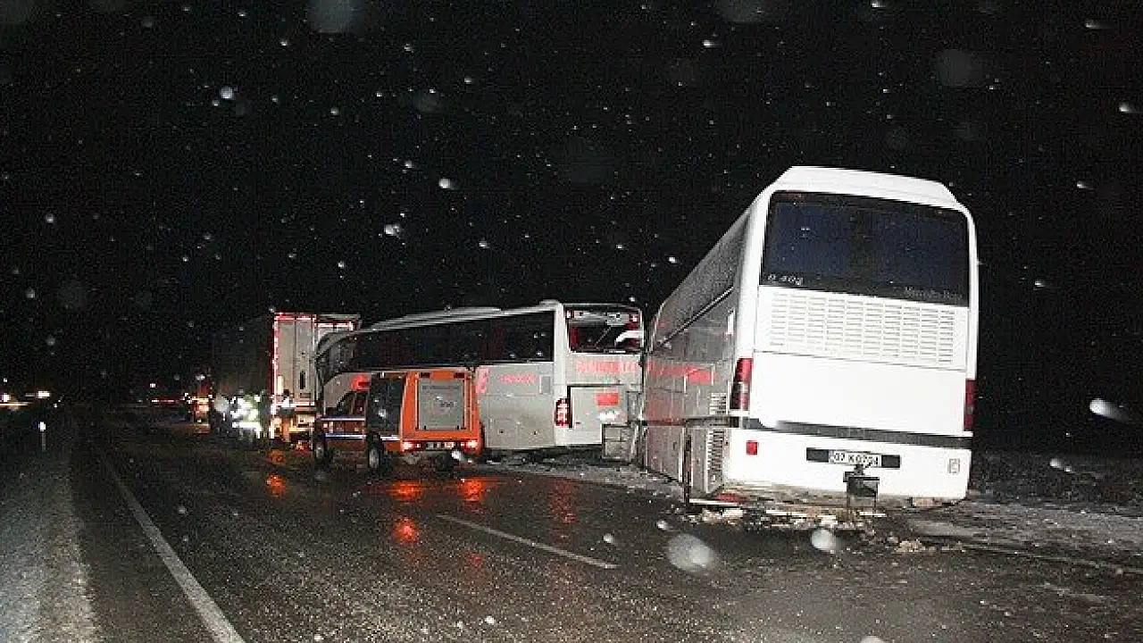 Ankara'daki MHP kongresine katılmak için Antalya'dan yola çıkan partilileri taşıyan Mehmet Kurutmaz yönetimindeki 07 K 0704 plakalı yolcu otobüsü de kazayı fark etmeyerek yolcu otobüsüne çarparak durabildi.