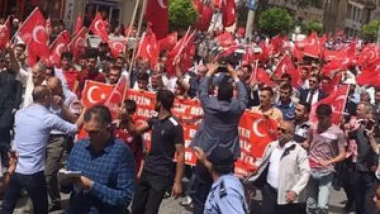 Mardin'in Midyat ilçesinde emniyet müdürlüğüne dün düzenlenen bombalı terör saldırısının ardından, bugün vatandaşlar terörü protesto etmek üzere Türk bayraklarıyla sokağa çıktı.