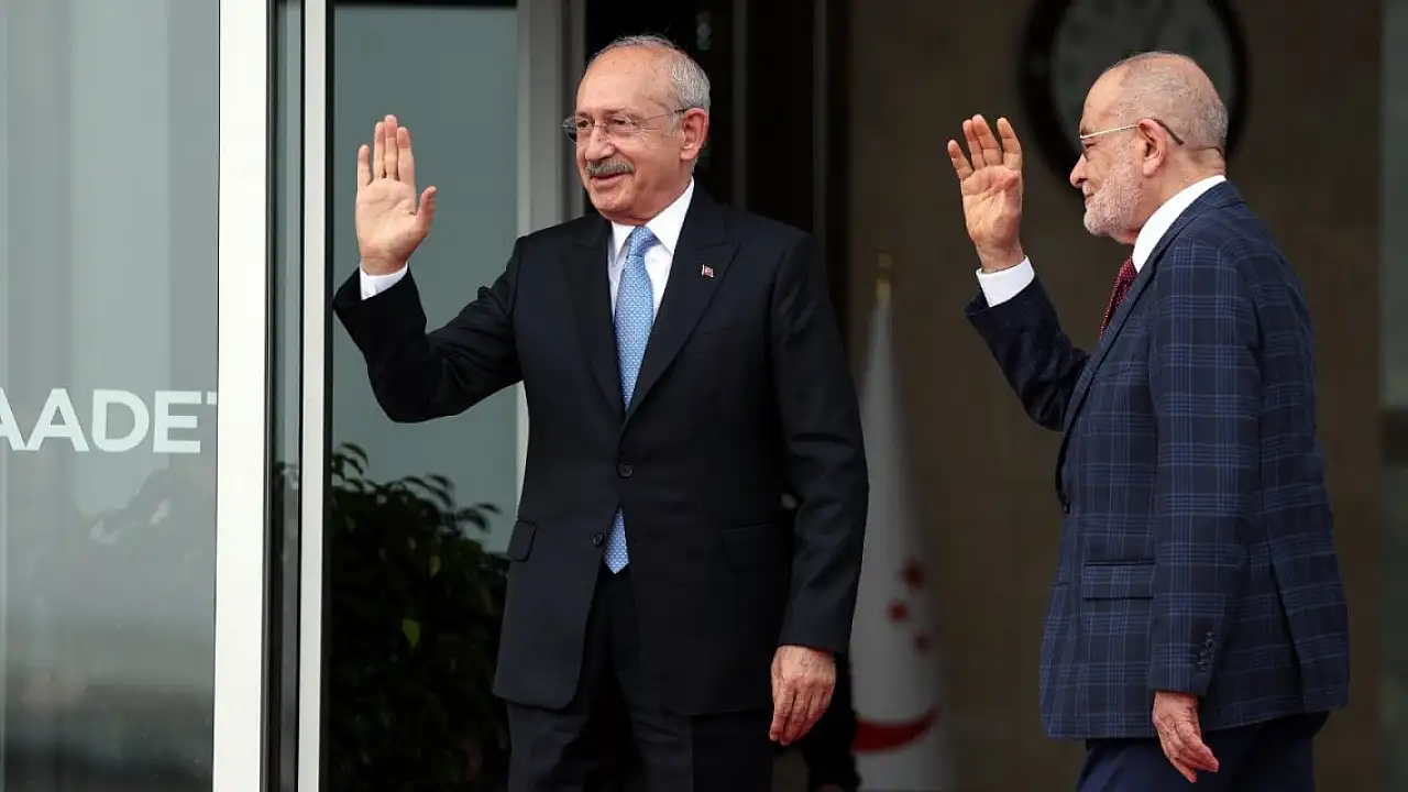 İYİ Parti Genel Başkanı Akşener'in 'Millet İttifakı'nda olmayacaklarını açıklayıp, cumhurbaşkanlığı adaylığı için Mansur Yavaş ve Ekrem İmamoğlu'nu göreve davet etmesinin ardından 'Millet İttifakı'nın diğer 5 lideri, pazartesi yapılacak olağan toplantı öncesi bugün bir araya geldi. SP Genel Merkezi'nde gerçekleştirilen toplantı için önce CHP Genel Başkanı Kemal Kılıçdaroğlu geldi. SP lideri Temel Karamollaoğlu, Kılıçdaroğlu ve ardından gelen DEVA Partisi Genel Başkanı Ali Babacan, Gelecek Partisi Genel Başkanı Ahmet Davutoğlu ile DP Genel Başkanı Gültekin Uysal'ı kapıda karşıladı. Toplantıda Akşener'in yaptığı açıklamalar ve ardından yaşanan gelişmeler değerlendirilerek, izlenecek yol haritası ele alınacak.