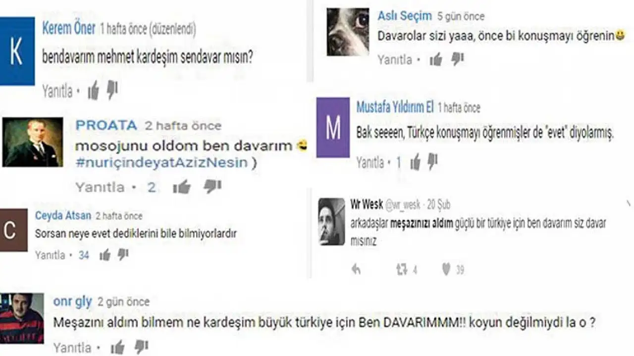 Yayınladıkları videoyla yörelerine has şive ile Başkanlık sistemine destek veren gençlere sosyal medya üzerinden aşağılayıcı yorumlar yapıldı. O yorumların bazıları ise şöyle; “Sorsan neye evet dediklerini bile bilmiyorlardır”, “Mosojunu oldom ben davarım”, “Davarolar sizi yaaa, önce bi konuşmayı öğrenin”, “Bak seeeen, Türkçe konuşmayı öğrenmişler de “evet” diyorlarmış”, “bendavarım Mehmet kardeşim sendavar mısın?”, “Meşazını aldım bilmem ne kardeşim büyük türkiye için Ben DAVARIMMM!!! Koyun değilmiydi la o? “, “arkadaşlar meşazınızı aldım güçlü bir türkiye için ben davarım siz davar mısınız”