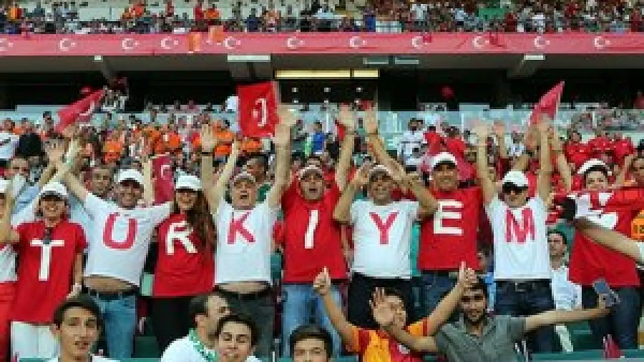 Milli maç öncesi taraftarlar "Şehitler ölmez, vatan bölünmez" şeklinde tempo tutarak, terörü lanetledi.