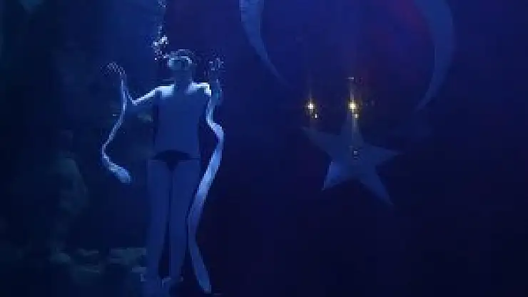 Milli serbest dalış sporcusu Erken'in, görsel şovun sonunda, su altında Türk bayrağı ile ay-yıldız sembolleri çıkarması izleyicilerden alkış aldı.