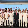 Türkiye’nin Tokyo Büyükelçisi Korkut Güngen milli kafileyi havalimanında karşıladı.