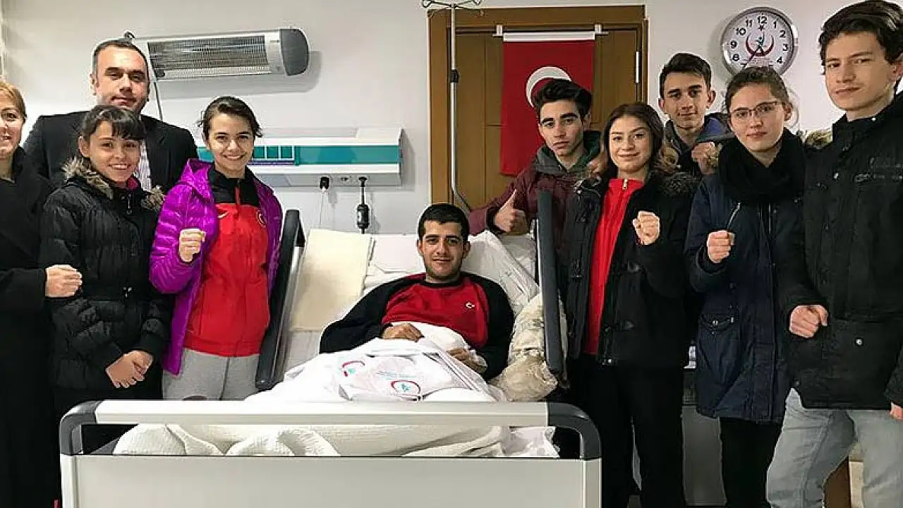 Eskişehir'de milli takım forması giyen tekvandocular, Fırat Kalkanı Harekatı kapsamında El Bab bölgesinde yaralanan Piyade Komando Teğmen Levent Fevzi Göztaşı'nı tedavi gördüğü hastanede ziyaret etti.