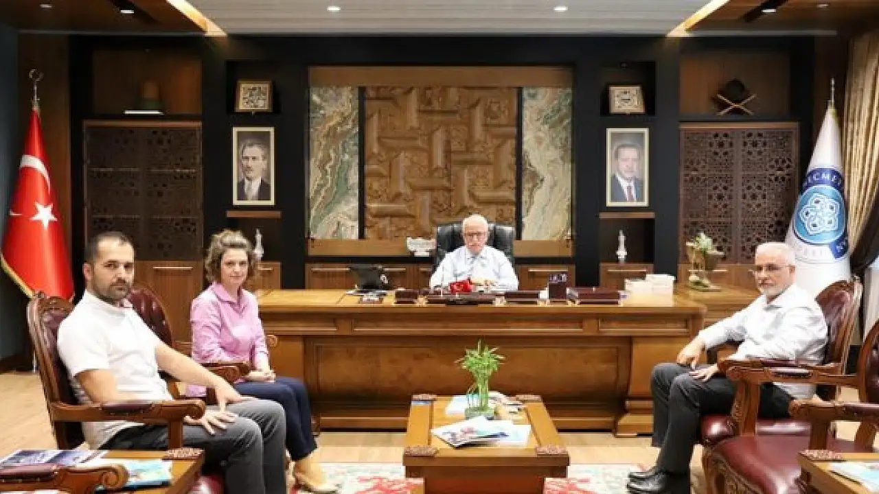 Türk Mühendis ve Mimar Odaları Birliği (TMMOB) Mimarlar Odası Konya Şube Başkanı Dr. Armağan Güleç Korumaz ve beraberindeki Yönetim Kurulu Üyeleri Necmettin Erbakan Üniversitesi (NEÜ) Rektörü Prof. Dr. Cem Zorlu'yu makamında ziyaret etti.