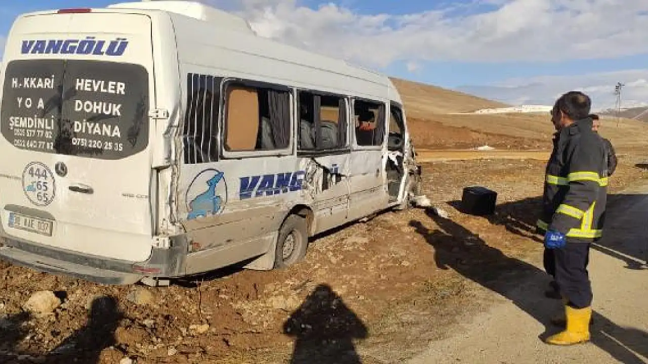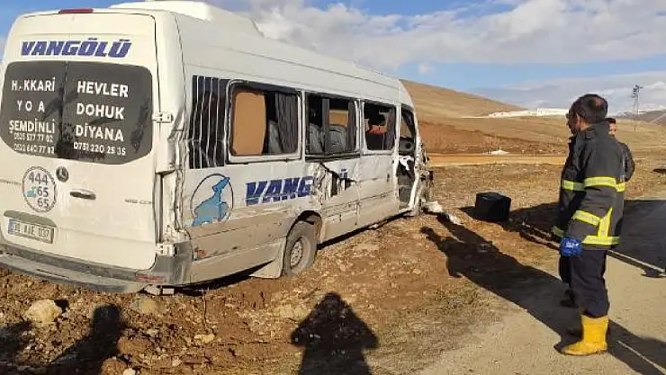 Yüksekova-Esendere kara yolundaki Dilimli Barajı yakınında, minibüs ile saman yüklü kamyonet çarpıştı.