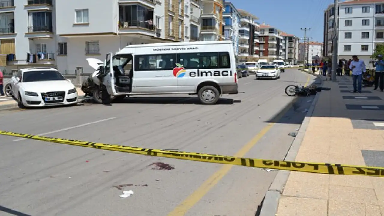 Kaza, saat 11.30 sıralarında Büyük Kergi Mahallesi 1741 Sokak'ta meydana geldi. Osman Babur (29) yönetimindeki 68 AY 280 plakalı minibüs, kavşakta Ogün Ömer Karsanlı (23) yönetimindeki 68 BJ 781 plakalı motosikletle çarpıştıktan sonra park halindeki otomobile çarparak durdu. Kazada, başında kask olmayan motosiklet sürücüsü Ogün Ömer Karsanlı olay yerinde yaşamını yitirdi, arkasında oturan Abdulsamet Sarılar (22) ise ağır yaralandı.
