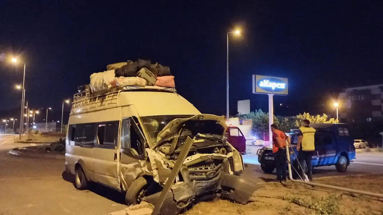 Minibüs ile otomobil çarpıştı: 16 yaralı