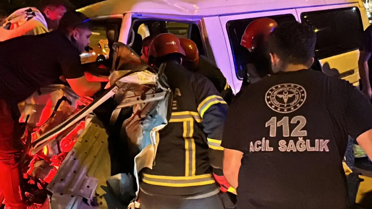 Minibüs, kırmızı ışıkta bekleyen kamyonete çarptı sürücü 3.09 promil alkollü çıktı