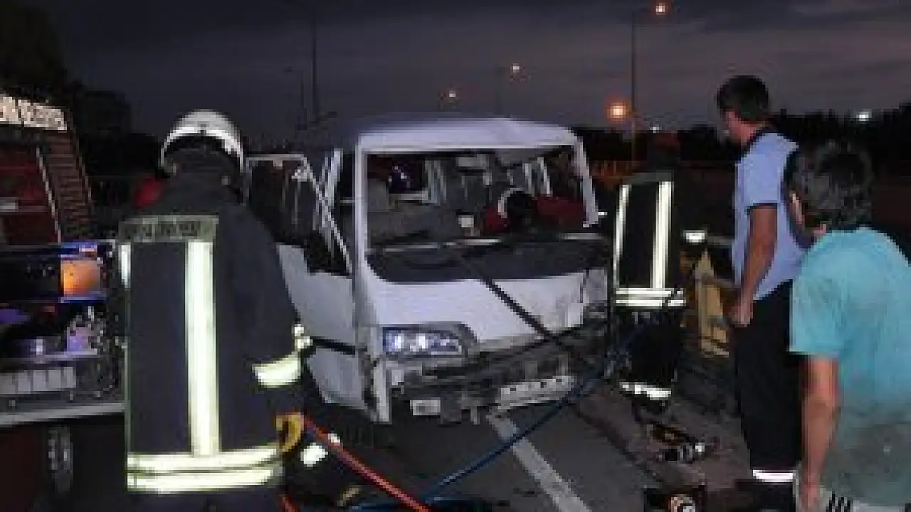 Konya'da simit taşıyan minibüsün kontrolden çıkarak yol kenarındaki korkuluklara çarpması sonucu araçta sıkışan sürücü yaralandı.
