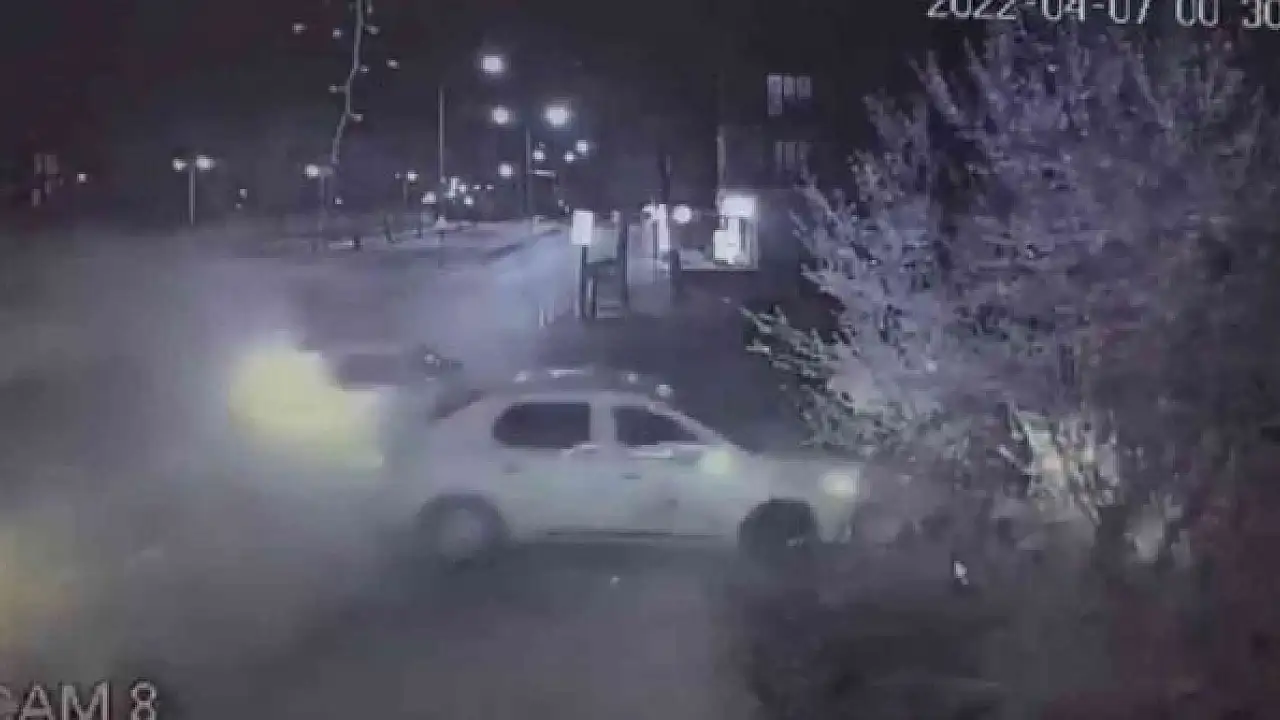 Servis minibüsünün park halindeki araçlara çarptığı anlar güvenlik kamerasına saniye saniye yansıdı. Görüntülerde servis minibüsünün hızla geldiği, önce ticari taksiye sonra da park halinde bulunan otomobile çarptığı görülüyor.