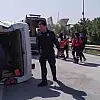 Basın Ekspres'te Yenibosna istikametinde seyir halinde ilerleyen minibüs bariyerlere çarpıp takla attı.