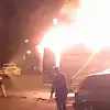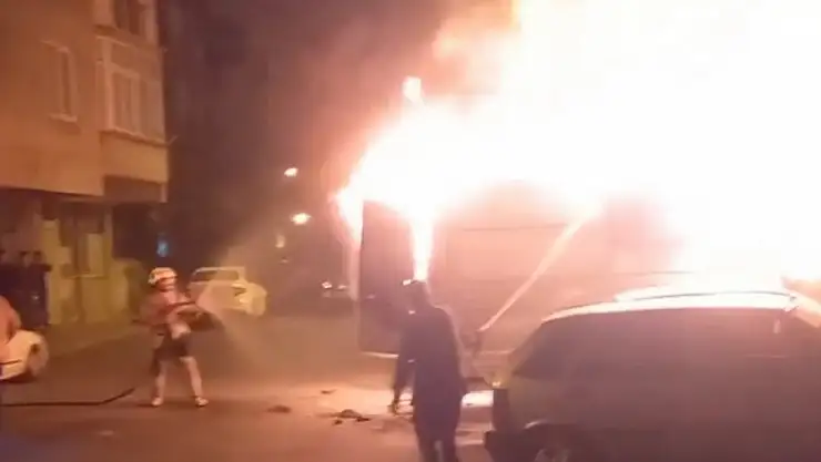 ATAŞEHİR'de karavana dönüştürülmek üzere işlem yapılan panelvan araçta yangın çıktı. Alevler kısa sürede büyüyerek park halindeki minibüse sıçradı. Alev topuna dönen araçlar cep telefonu kamerasına kaydedildi.