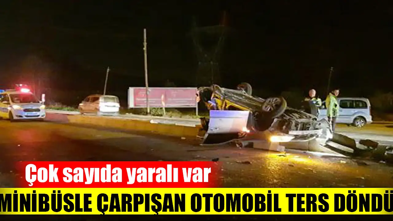 Minibüsle çarpışan otomobil ters döndü: 13 yaralı