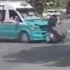 Minibüsle motosikletin çarpıştığı kaza kamerada