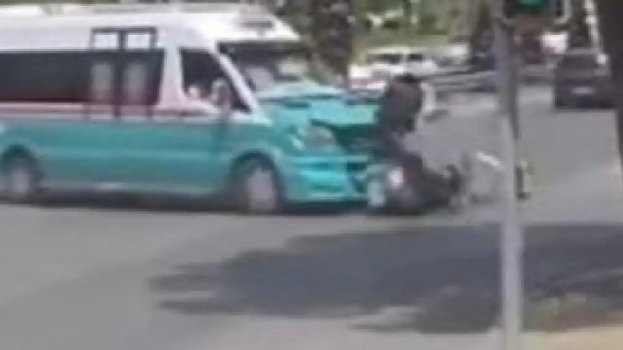 İZMİR'in Karşıyaka ilçesinde, yolcu minibüsüyle çarpışan motosiklet sürücüsü yaralandı. Kaza anı ise güvenlik kamerasına yansıdı.