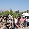 Kazada yaralanan sürücü Akkoç ile minibüsteki 12 kişi, çevredeki hastanelere kaldırıldı.