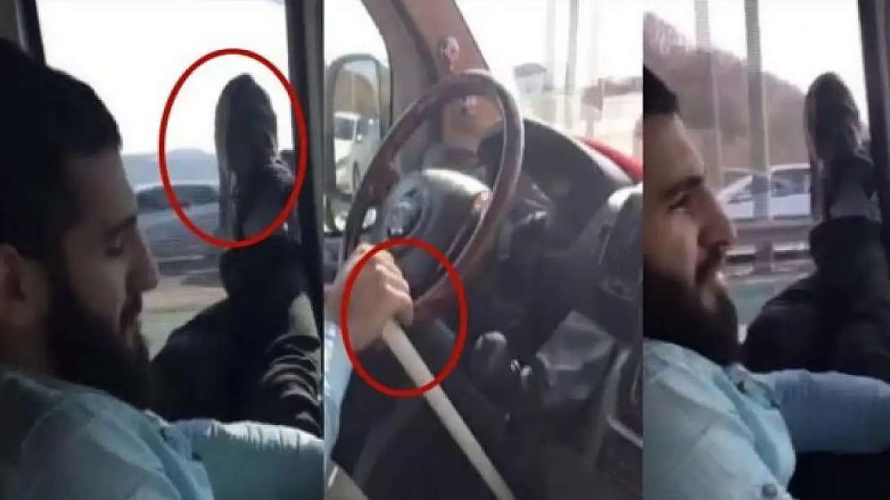 Fatih Sultan Mehmet Köprüsü'nde ayaklarını dışarı çıkarıp kullandığı minibüsü sopayla kontrol eden ve o anları görüntüleyerek sosyal medyada paylaşan şüpheli yakalandı.