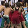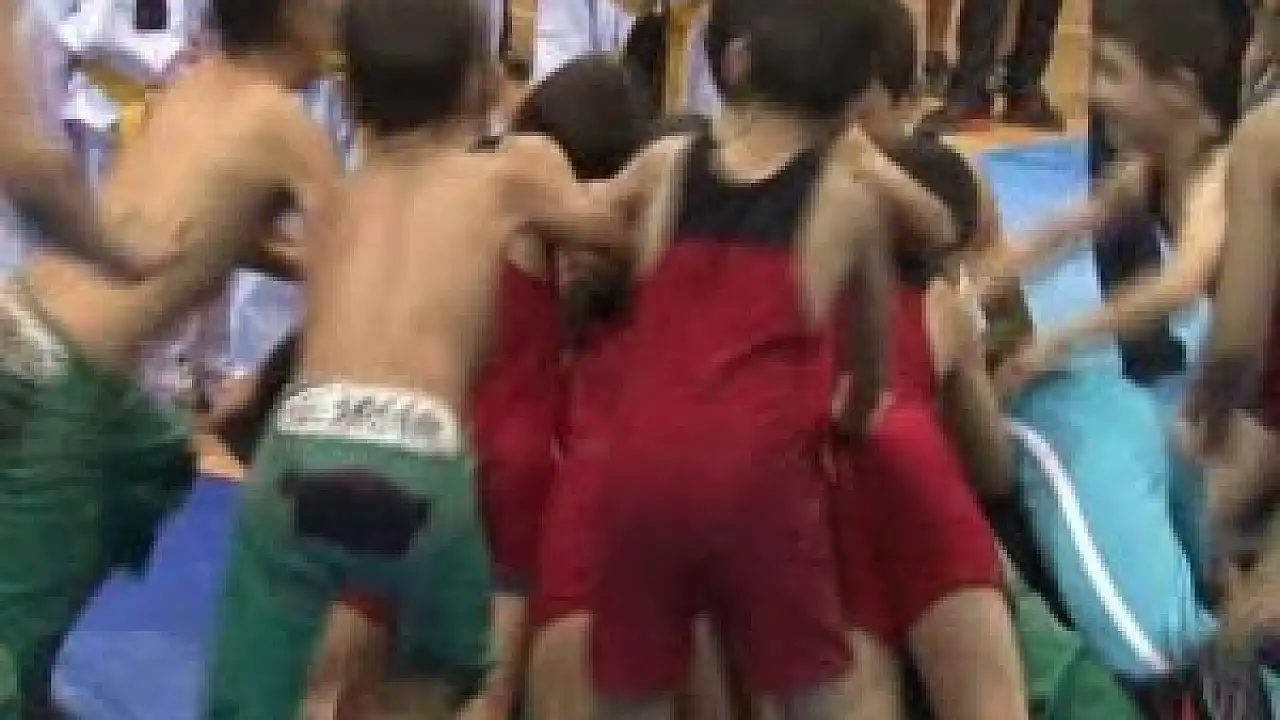 Avrupa ve Dünya Şampiyonu Güreşçi Rıza Kayalap'i, minik güreşçiler devirdi.