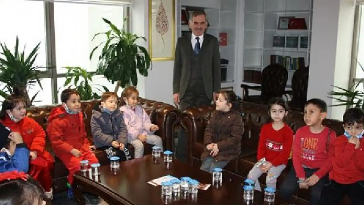 Selçuklu Müftülüğü Şükrü Coplan Kur'an Kursu 4-6 yaş öğrencileri biriktirdikleri harçlıkları yetim projesine ulaştırılması için Selçuklu Müftüsü Bekir Derin'e teslim ettiler.