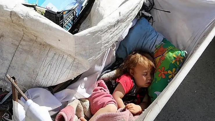 Sivas'ta, geçimlerini geri dönüşüm malzemeleri toplayarak sağlayan Tutak ailesinin en küçük çocuğu 1 yaşındaki Sıla, annesinin çöp topladığı araca yaptığı özel bölmede büyüyor.