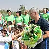 Antrenman öncesi teknik heyet ve oyuncularla hatıra fotoğrafı çektiren minikler, doğum günü olan takım kaptanlarından Ali Turan’ın da doğum gününü kutlarken, okul öğretmenlerinden Betül Yücel, Teknik Direktör Rıza Çalımbay’a çiçek takdim ederek başarılar dileğinde bulundu.