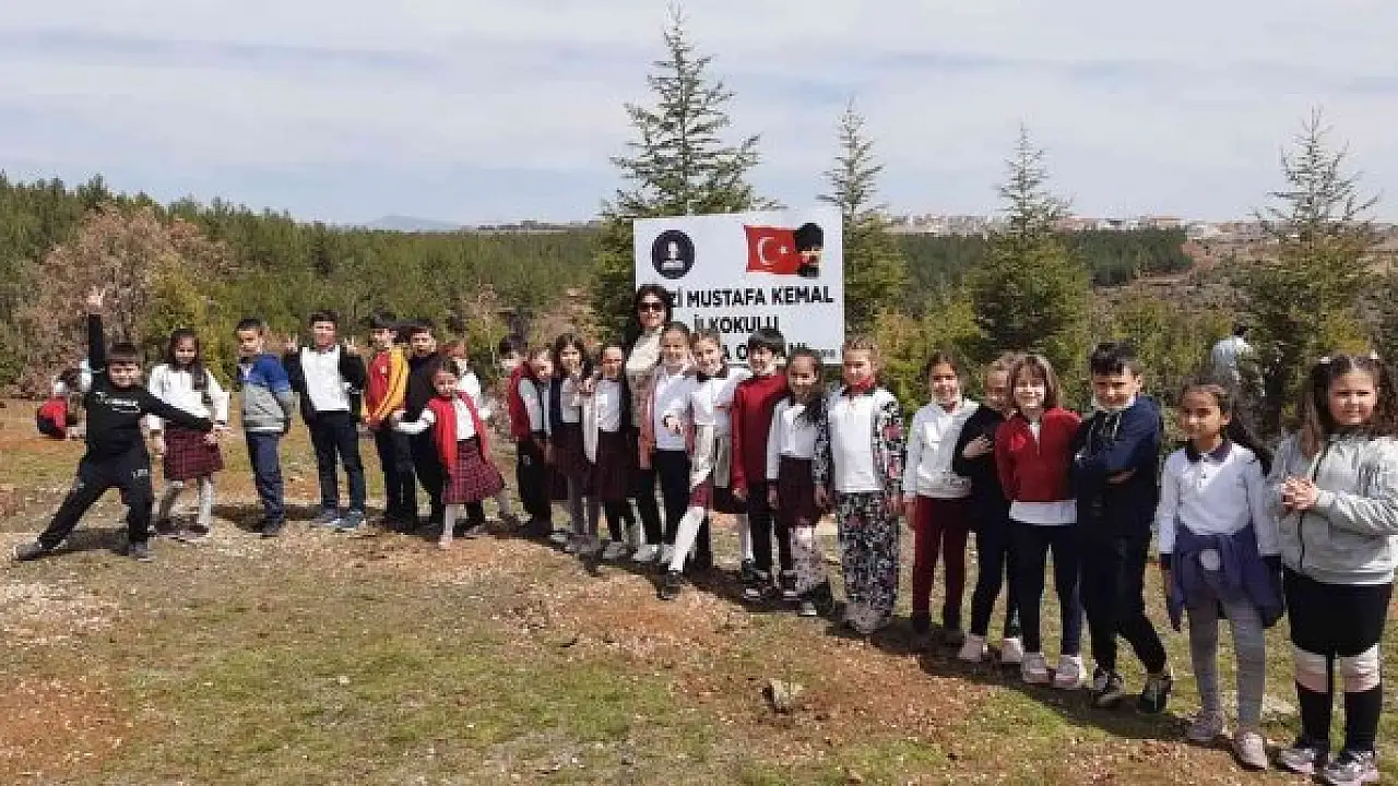 Uşak Gazi Mustafa Kemal İlkokulu 3. sınıf öğrencileri, Gazi Ormanı'na giderek çam fidesi dikti.