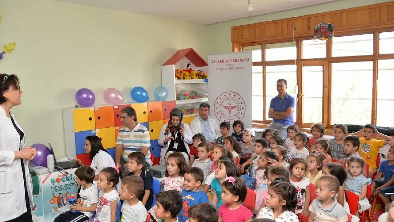 Meram İlçe Sağlık Müdürlüğünden gelen doktorlar ve hemşireler Halk Sağlığı Haftası Kapsamında, Konya Eğitim ve Araştırma Hastanesi kreşinde öğrenim gören öğrencilere, sağlıklı beslenme, diş sağlığı ve önemi hakkında eğitim verdi.