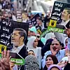 Muhammed Mursi'nin mahkemesi sonrasındaki ilk cuma gününde Mursi'nin dik duruşuna vurgunun yapıldığı ve halk desteğinin sürdürüleceği sloganları atılıyor.
