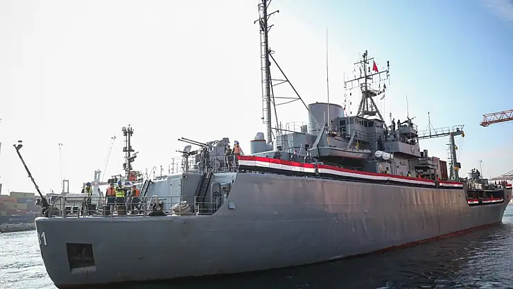 Mısır donanması bünyesindeki 105 metre uzunluğa ve 40 metre yüksekliğe sahip gemi, 2 günlük yolculuğunun ardından Mersin Uluslararası Limanı'na ulaştı.