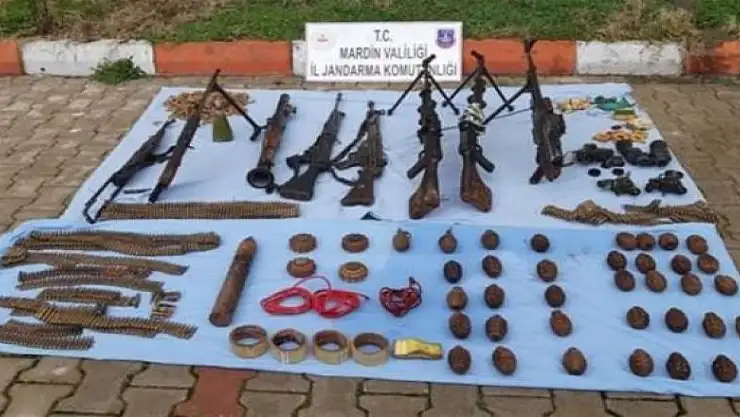Mardin'de jandarma ve MİT'in ortaklaşa düzenlediği operasyonda terör örgütü PKK'ya ait çok sayıda silah, patlayıcı ve mühimmat ele geçirildi.